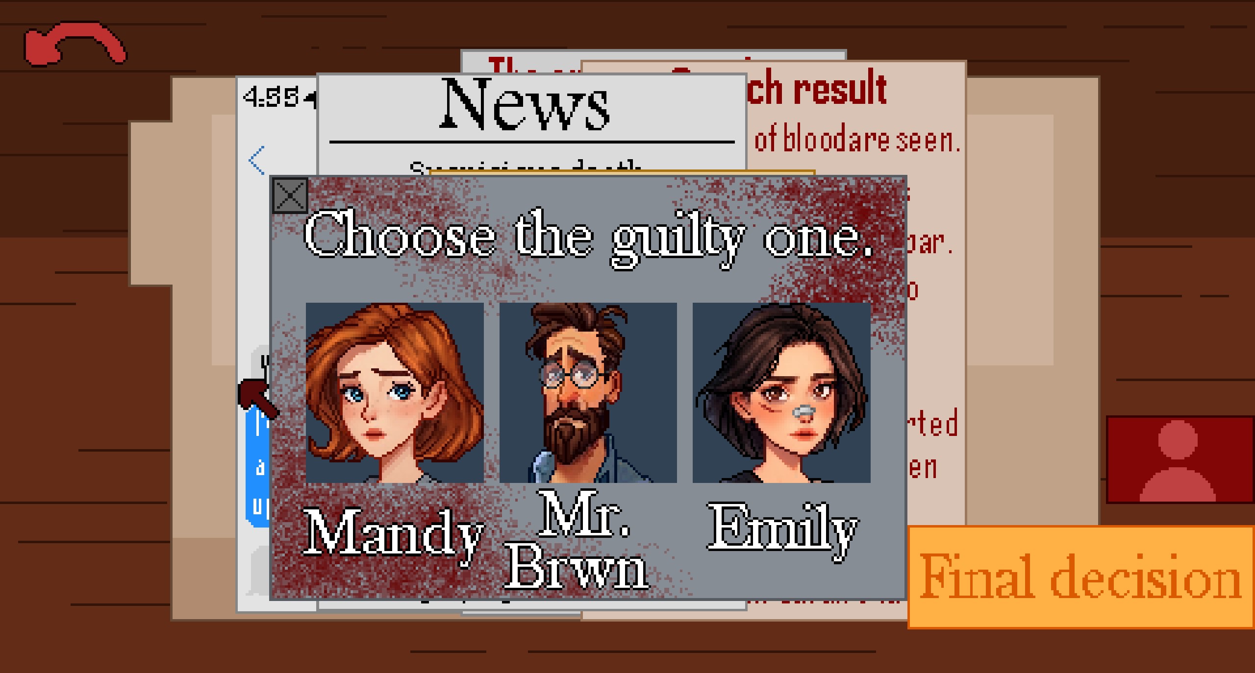In the game, I wanted to make sure you experience the feeling of being a skilled detective in a challenging situation with a dark atmosphere. Thatโs why Iโve created a somewhat dark and neutral environment, and selected subtle music to help you focus on solving the cases.๐